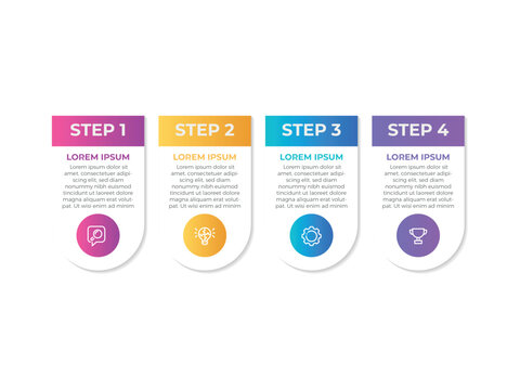 Business infographic template. 4 Step timeline journey. Process diagram, 4options on white background, social media post, Infograph elements vector illustration.