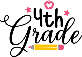 4th Grade Fourth Grade back to school typography clip art design on plain white transparent isolated background for card, shirt, hoodie, sweatshirt, apparel, tag, mug, icon, poster or badge