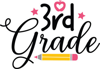 3rd Grade Third Grade typography clip art design on plain white transparent isolated background for card, shirt, hoodie, sweatshirt, apparel, tag, mug, icon, poster or badge