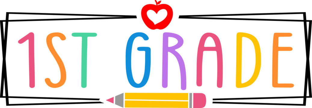 First Grade 1st Grade back to school typography clip art design on plain white transparent isolated background for card, shirt, hoodie, sweatshirt, apparel, tag, mug, icon, poster or badge