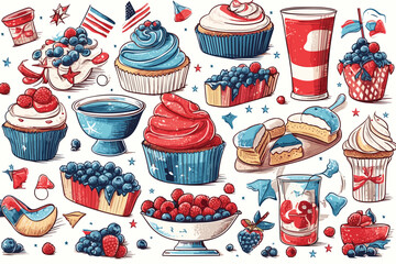 4th of July USA Independence Day party food and drink vector art illustration.