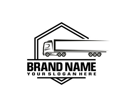 silhouette illustration of a powerful off-road pickup truck navigating a rugged rocky terrain with a decorative banner. Off road car logo icon design illustration and off road car vector logo design