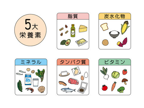 5大栄養素 食材 食べ物 栄養バランス 成分 イラスト