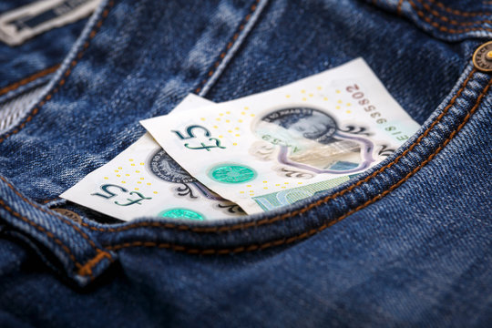 Five t-shirts in different colors with a pocket on the front, laid out on a wooden surface.
