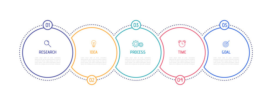 Business process infographic template. Thin line design with numbers 5 options or steps. Vector illustration graphic design