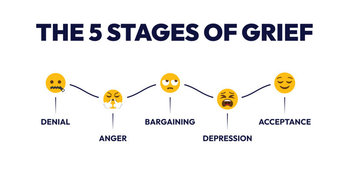 5 Stages Of Grief Cycle. Gradient Line in a white background.