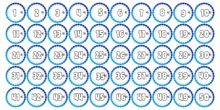 icon set weather forecast. Flat, blue, red 1 TO 50 , degrees Celsius, clock and weather forecast. Vector icon 1