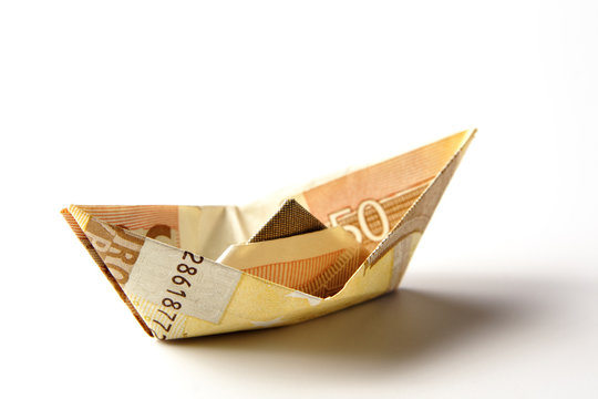 Big pile of euro currency, fifty and hundred euro banknotes isolated on white background