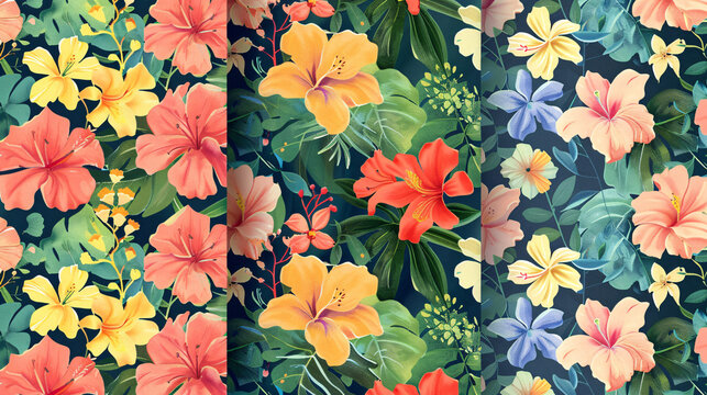 Vector floral seamless pattern with ethnic folk motifs. Simple dark blue abstract geometric ornament texture with cute flowers, repeat tiles. Retro vintage style background. Subtle repeated design