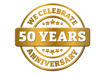 3d golden 50 years anniversary celebration with star background. 3d illustration.