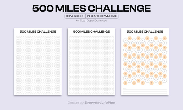 500 Miles Challenge Tracker Printable – Running Goal Log & Fitness Progress Sheet