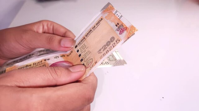 woman's hands counting Indian currency notes  Indian cash money of 500, 200 rupee