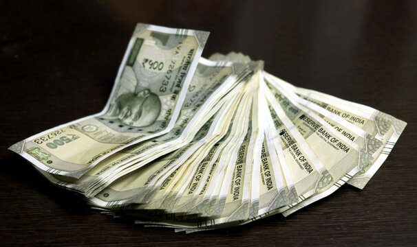 Close up of Indian Currency Notes Rupees 500 Rs Currency Note