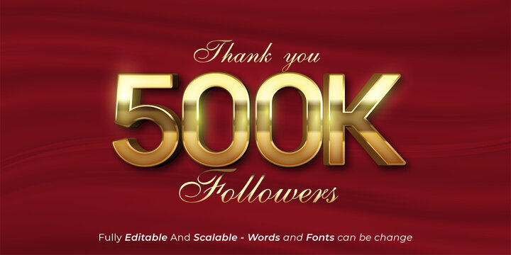 500k or 500000 followers thank you. followers, Web user Thank you celebrate of subscribers or followers, likes.. 3D render