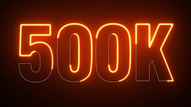 Glowing neon 500k animation of text effect video motion on black background. 300k Followers Celebration text glowing neon animation