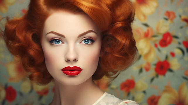 a beautiful 50s style glamour pinup portrait of a red haired woman