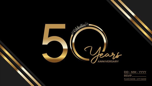 Golden 50th anniversary celebration with festive confetti
