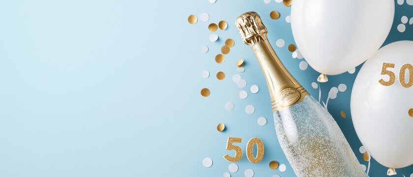 Golden number 50 amidst vibrant confetti celebration