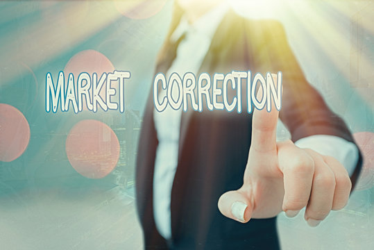 Text sign showing Market Correction. Business photo showcasing When prices fall 10 percent from the 52 week high