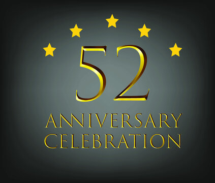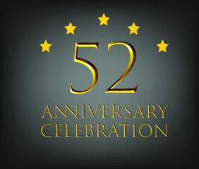 Anniversary 52. gold 3d numbers. Poster template for Celebrating 52th anniversary event party. Vector illustration