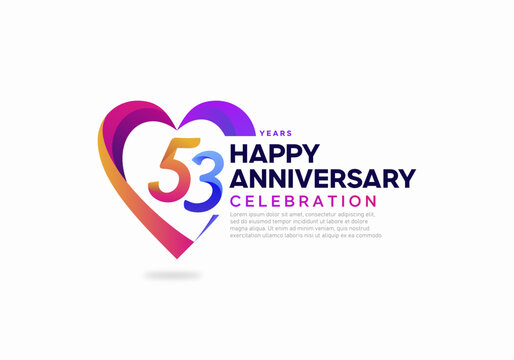 53 years anniversary celebration icon logo colorful with love shape