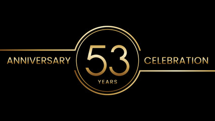 53 year anniversary. Anniversary template design with golden ring. Logo Vector Illustration