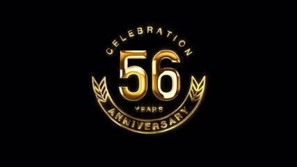 56th Golden Anniversary Celebration. Happy 56 Years Anniversary Animation in Gold Color on the Transparent Background, Alpha Channel. Great for greetings, celebrations, events, and gifts.
