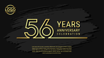 56th Anniversary Celebration, Golden Anniversary logo design in double line style isolated on black background. Vector Template Illustration