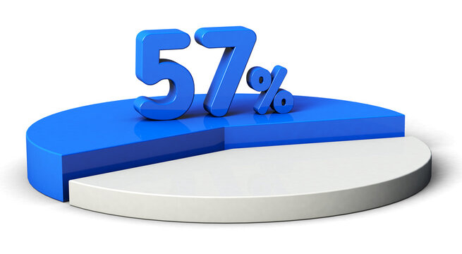 57% blue and white pie chart isolated on transparent background. 3d illustration.