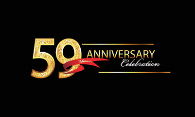 59 Year Anniversary celebration Vector Design. 59th Anniversary celebration. Gold Luxury Banner of 59th Anniversary celebration with red ribbon and glitter. Background celebration. Vector anniversary