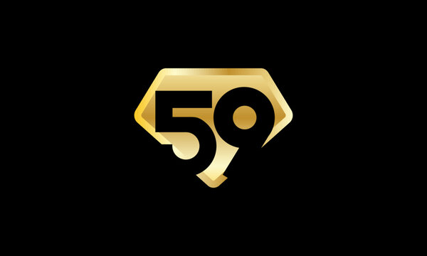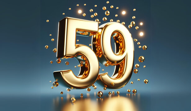Decorated gold cake for birthday or anniversary party, candle number 59, white background
