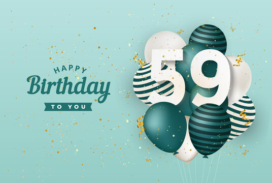 Happy 59th birthday with green balloons greeting card background. 59 years anniversary. 59th celebrating with confetti. Vector stock