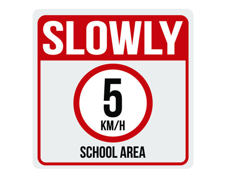 5km per hour limited speed. Zone up to 5km. Traffic sign on white background.