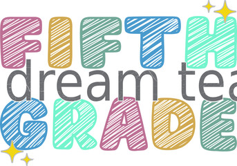 Hello fifth grade Back to School quote retro typographic sublimation art on white background