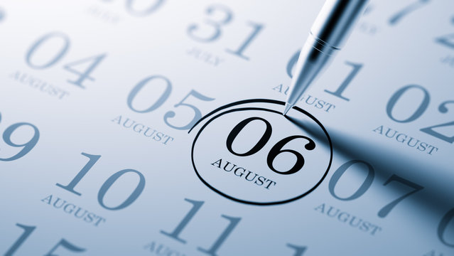 August 06 written on a calendar to remind you an important appoi