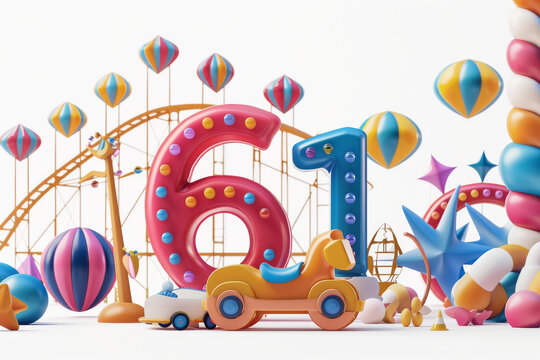 Illustration background with 61 for 6 June 1 World Children's day
