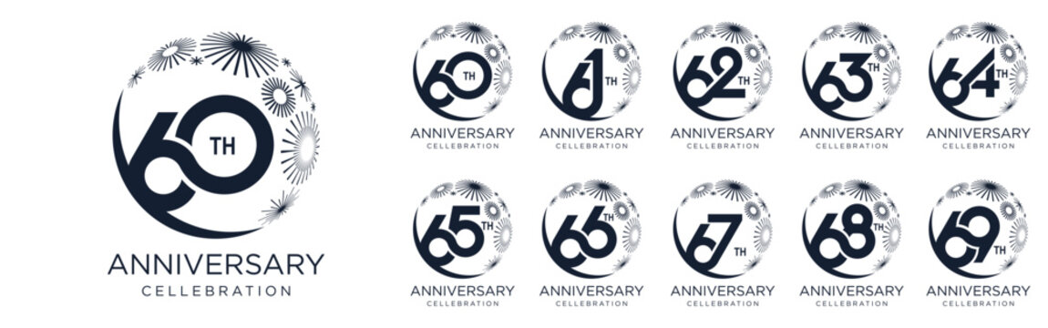 set of 60 to 69th anniversary logotype design, with black color fireworks for celebration event, wedding, and birthday, vector illustration