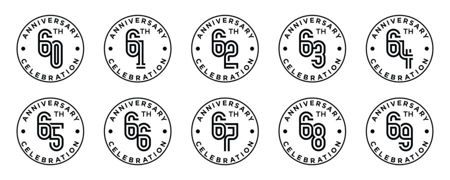 set anniversary 60 to 69 year logo designs. abstract number, icon, vector illustration