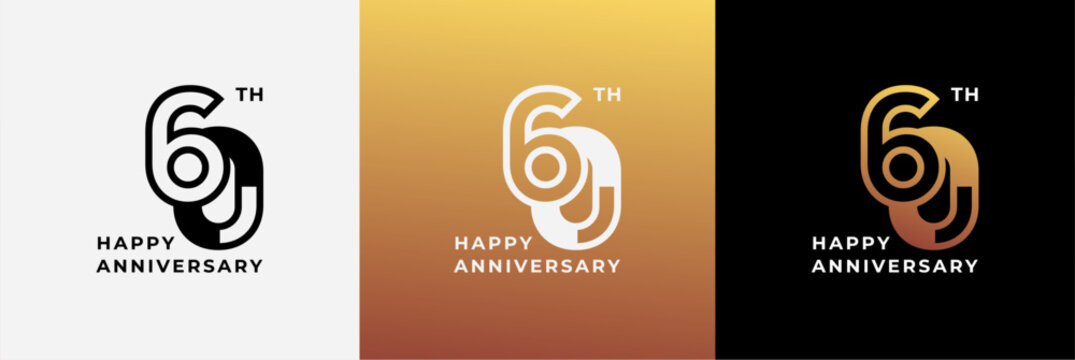 Logo 60th, 60 years anniversary, Creative template for celebration, birthday, greeting and invitation. Editable file