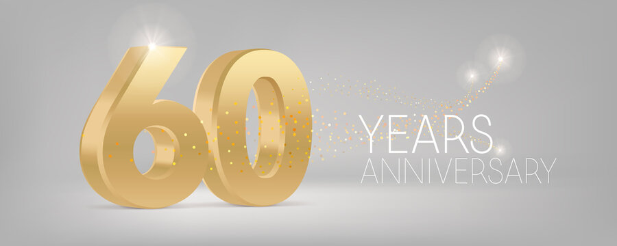 60 years anniversary vector icon, logo. Isolated graphic design with 3D number for 60th anniversary