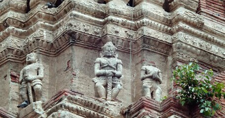 Giant statues on old stupa in Thailand. It was built during the Ayutthaya period, about 600 years ago, restored by the government. Wat Phra Sri Mahathat. The Buddhist Temple in Suphan Buri Province.