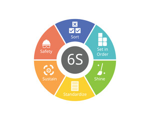 6S method in Lean Six Sigma from sort, set, shine, standardize, sustain, safety