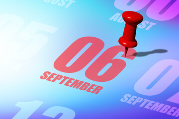 September 6. Cartoon style calendar. Cartoon style calendar with date and month name on green chroma key background. 4k.
