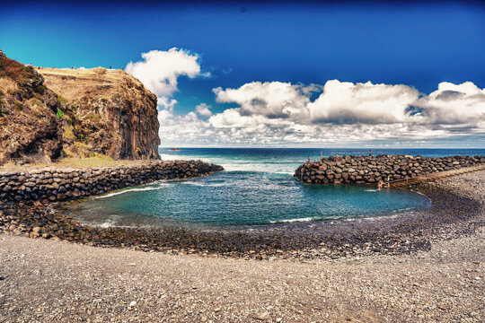 Madeira, Portugal - September 6, 2022: Tourists and locals enjoy Praia do Faial