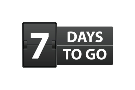 7 days to go last countdown icon. Seven day go sale price offer promo deal timer, 7 days only