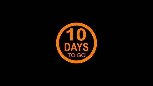 10 days to go animation on black background, days count animation, 10 days count in a month with days to go text animation.