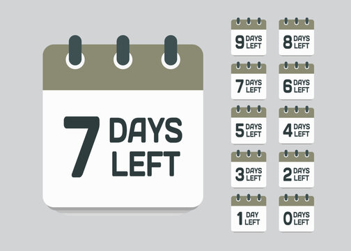 Countdown left days banner. count time sale. Nine, eight, seven, six, five, four, three, two, one, zero days left. Vector illustration. EPS 10.