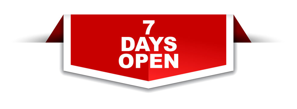 red and white banner seven days open