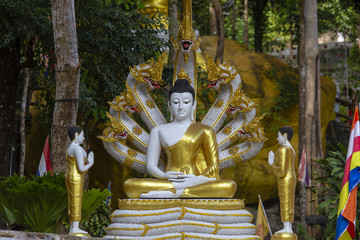 Beautiful Buddha statue with Naga heads at buddhist temple, Thailand.