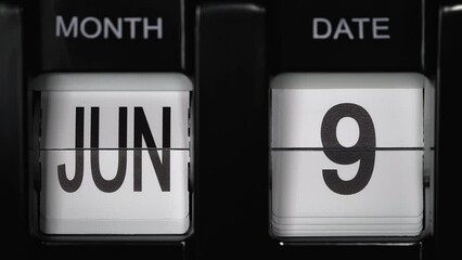 retro flip calendar with a date change from the eighth of June to the ninth of June. daily calendar with a change of days of the month. close up.
